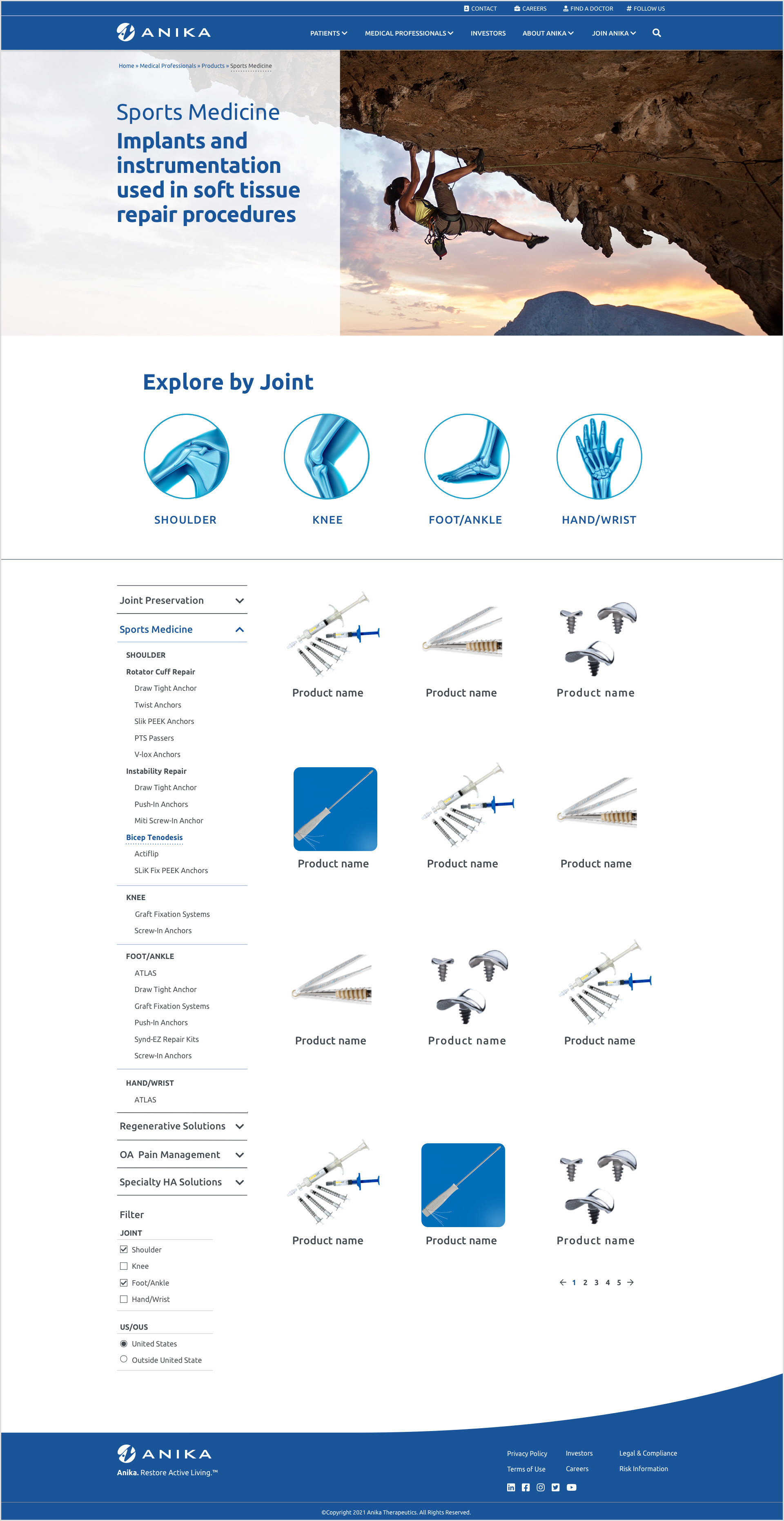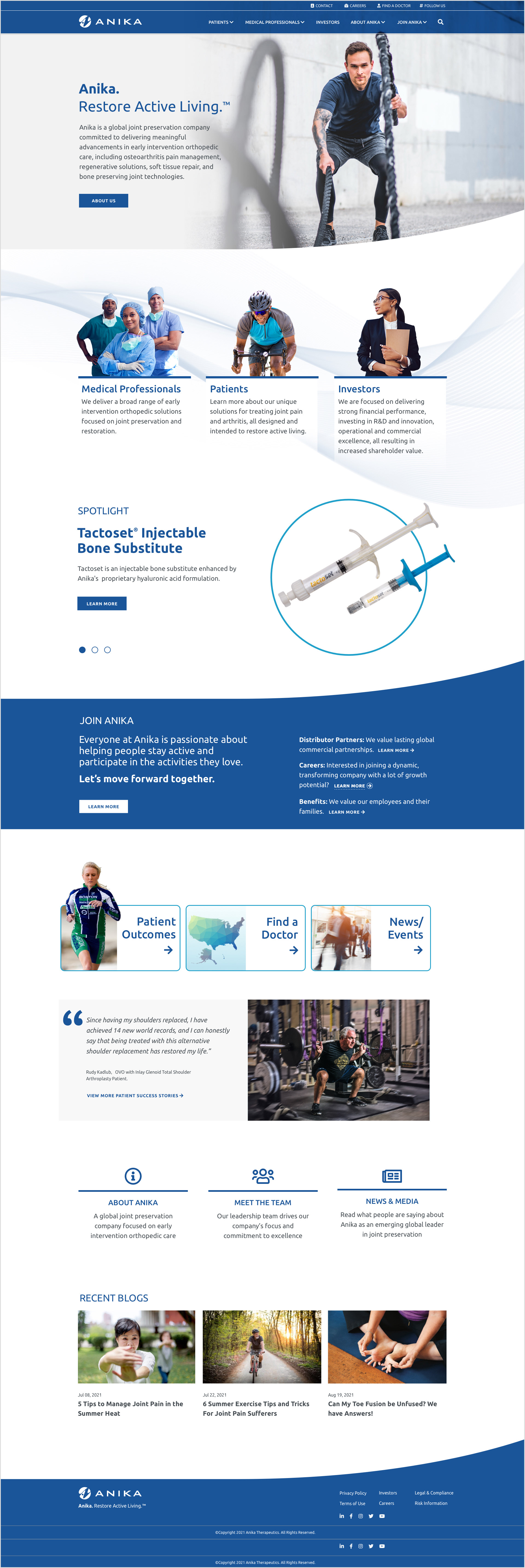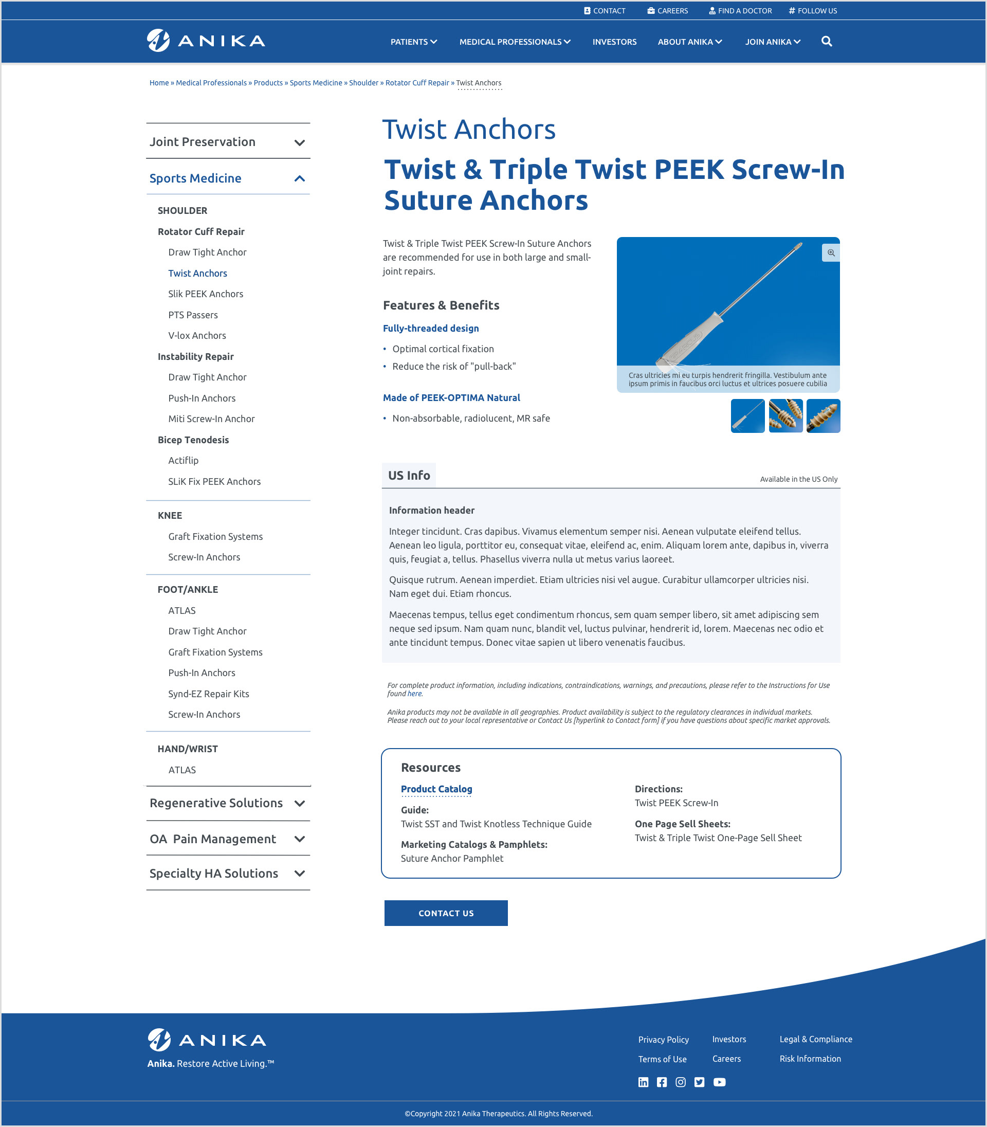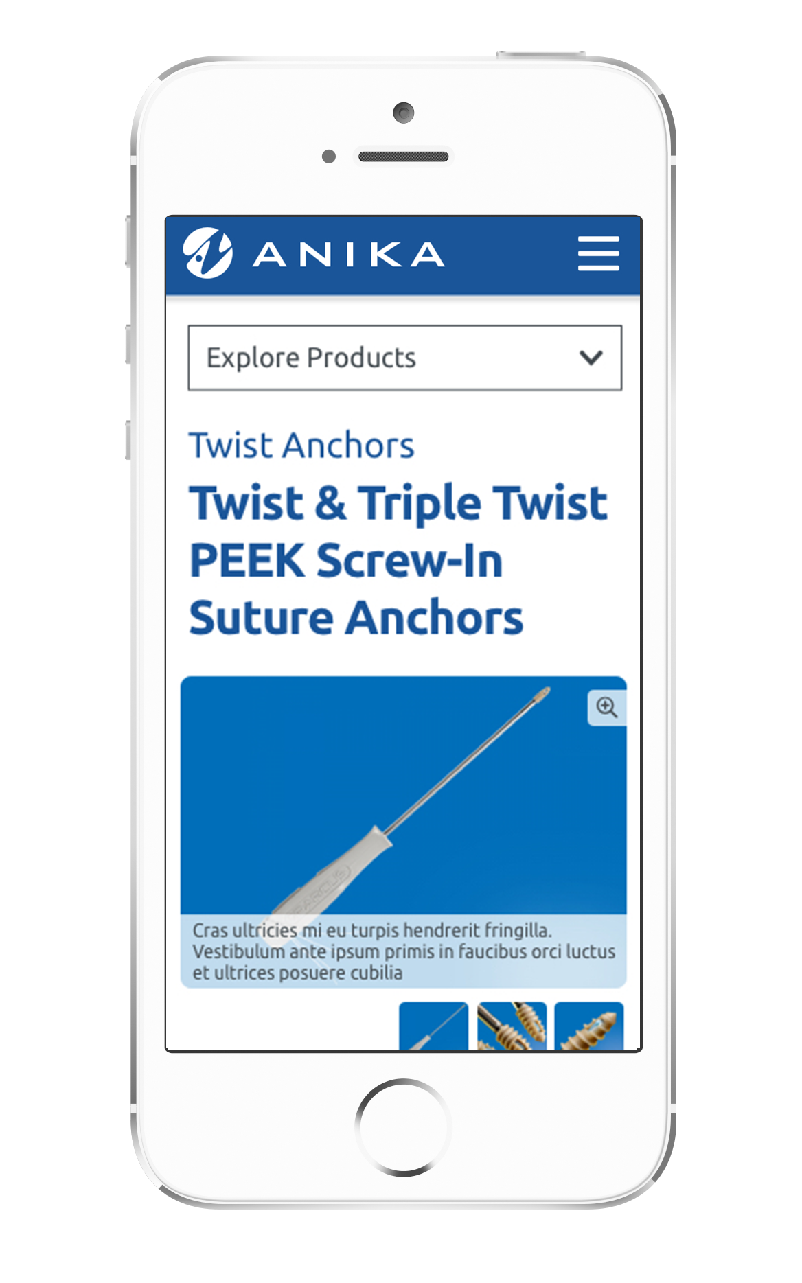 Visual design of desktop and mobile templates for development. Based on existing Anika branding.