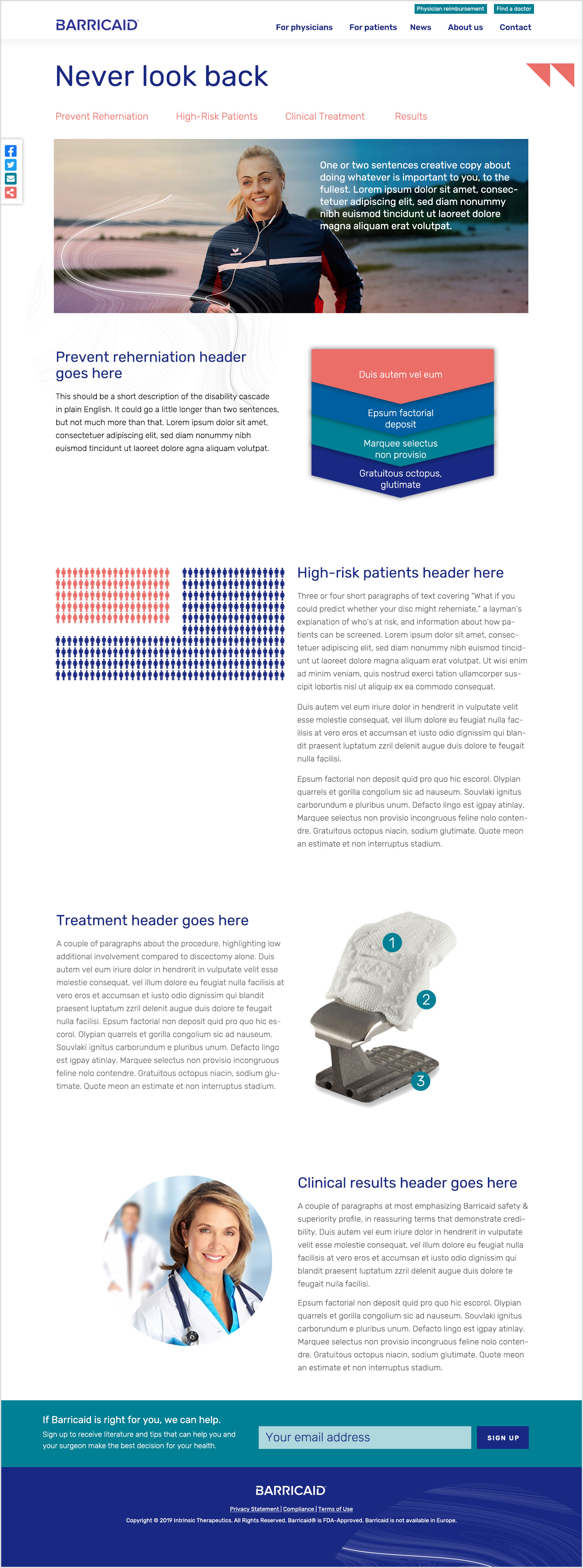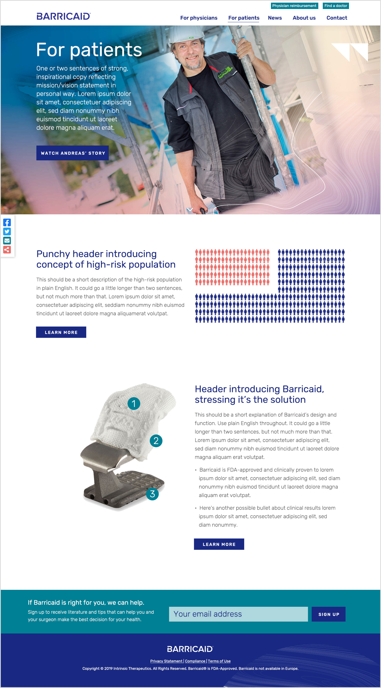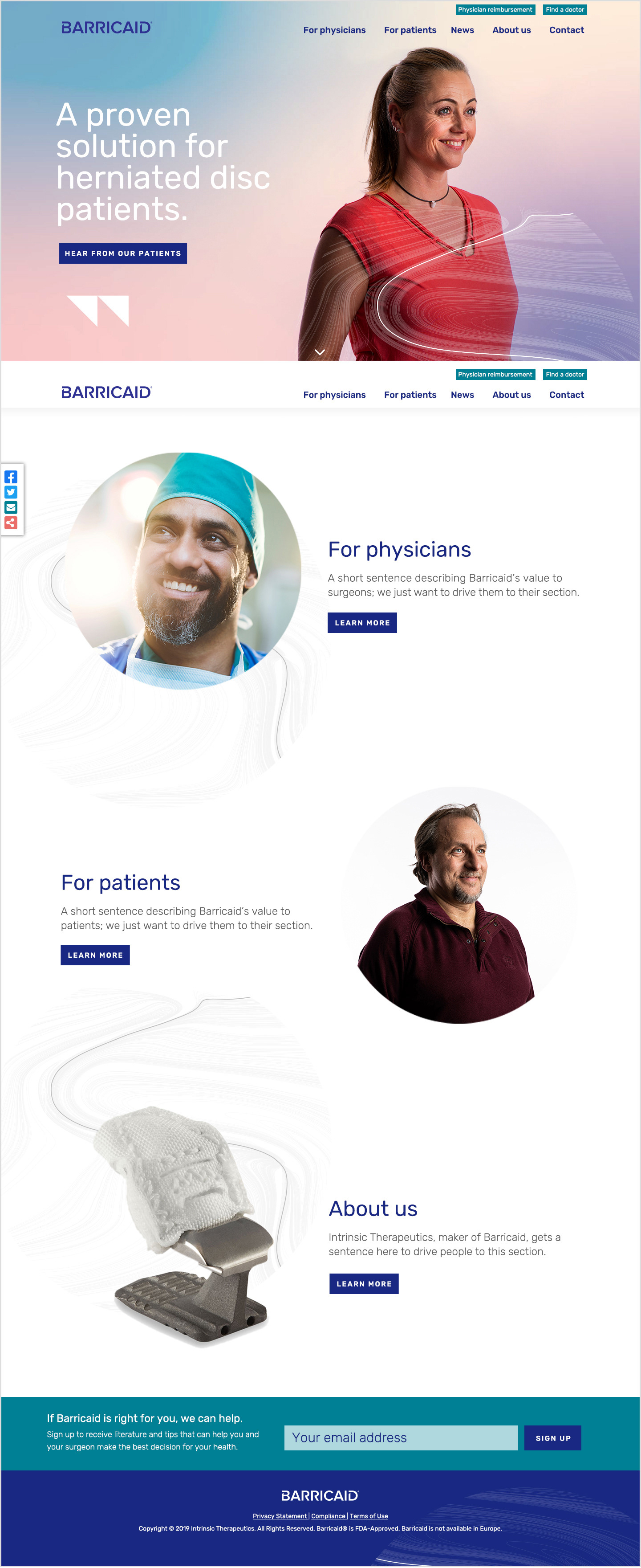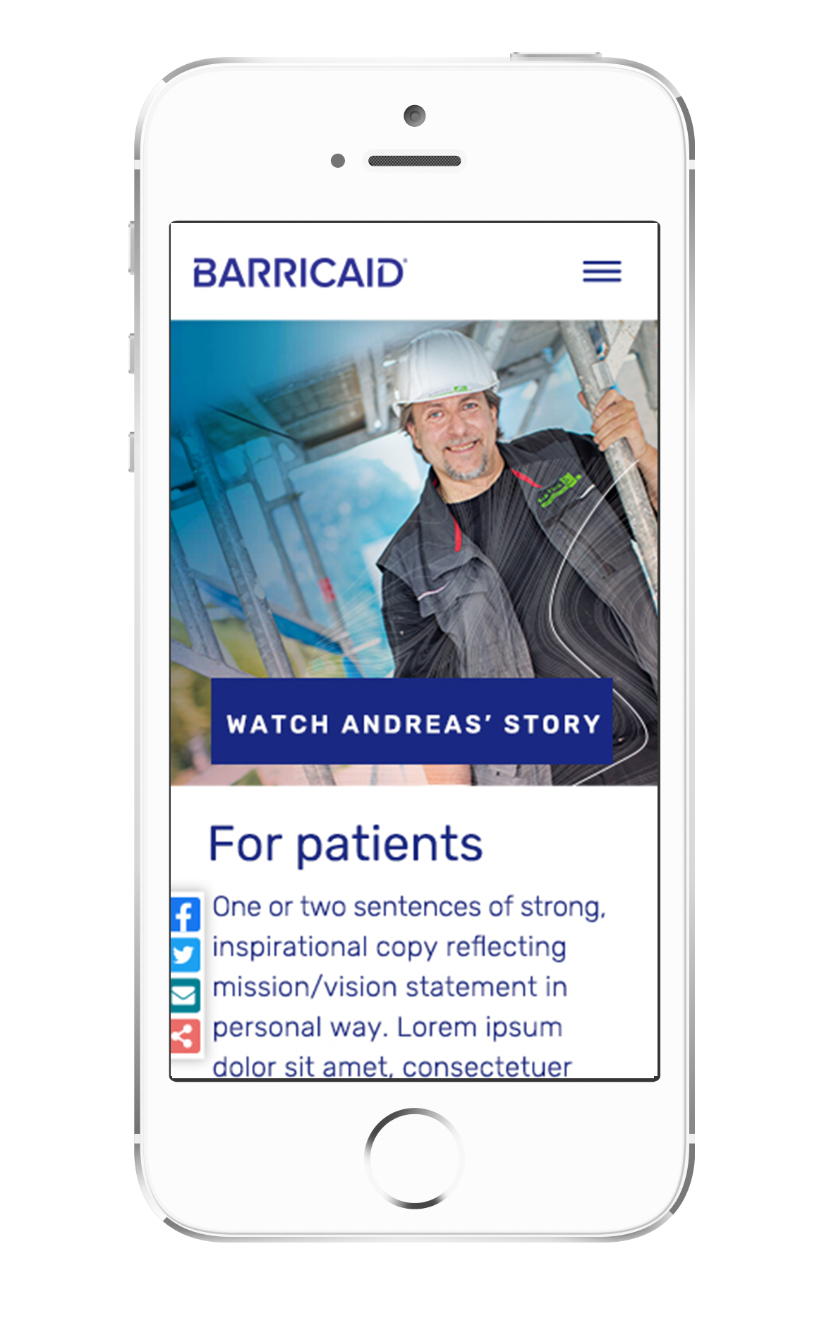 Visual design of desktop and mobile templates forĀ development. Based on existing BarricaidĀ branding.