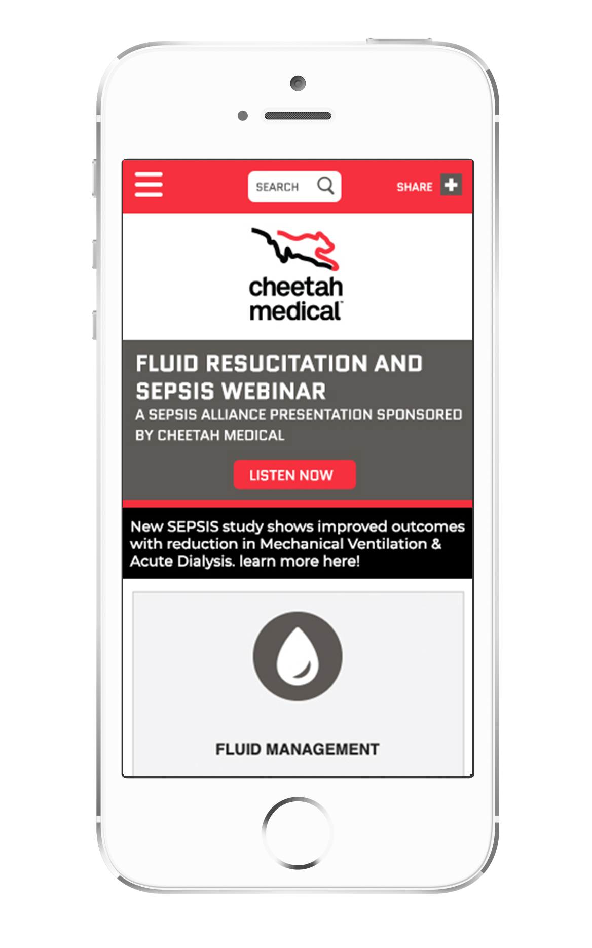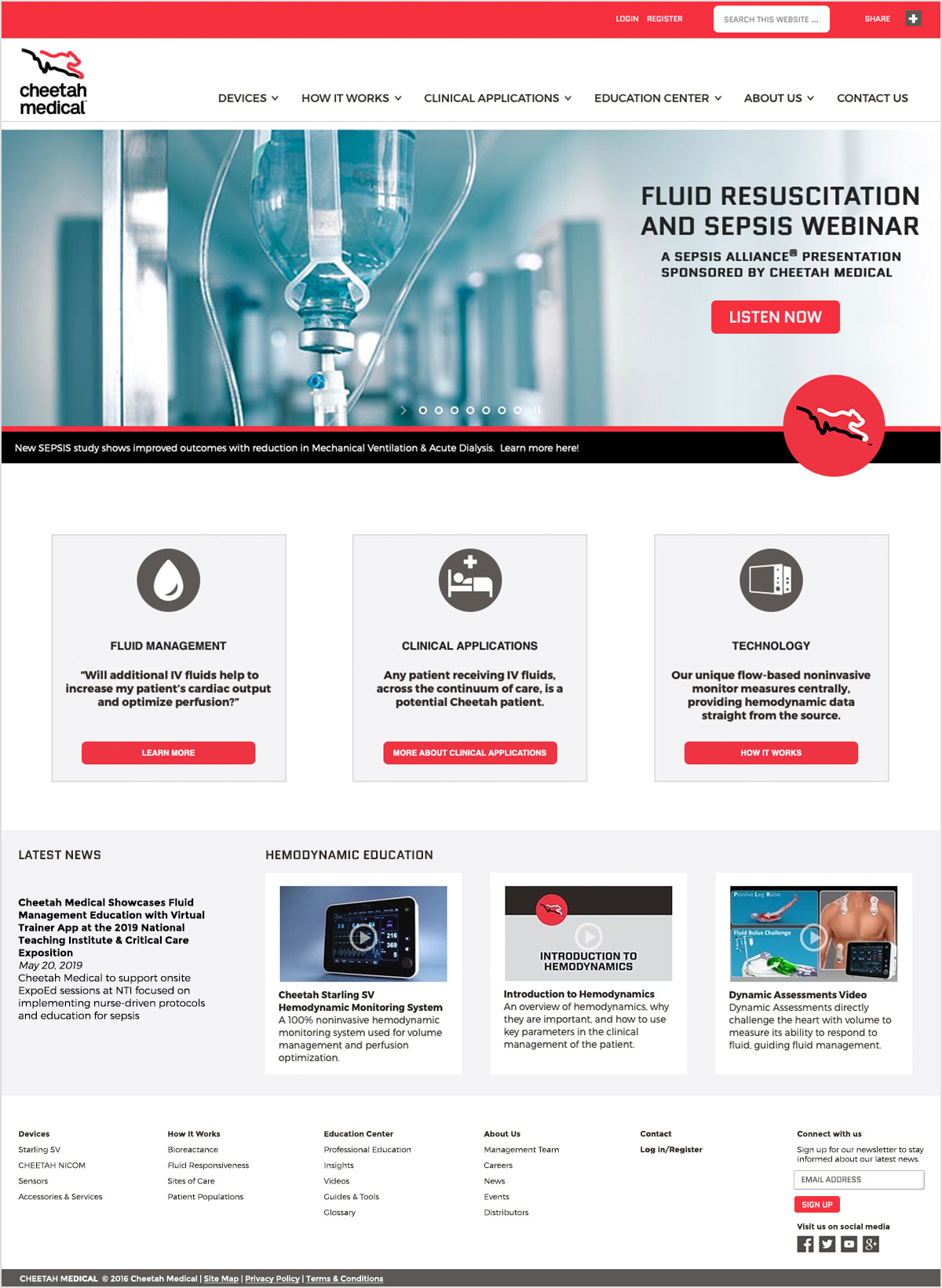 Visual design of desktop and mobile templates forĀ development. Based on existing Cheetah Medical branding.